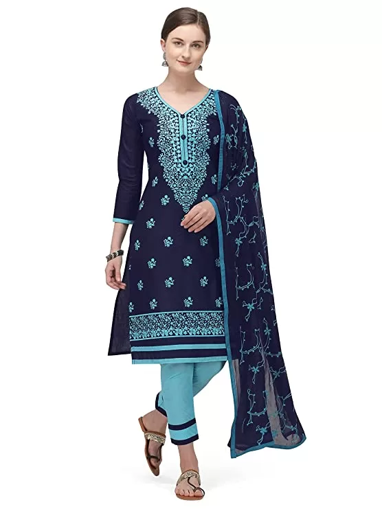 EthnicJunction Women’s Cotton Blend Lucknowi Chikankari Unstitched Salwar Suit Material